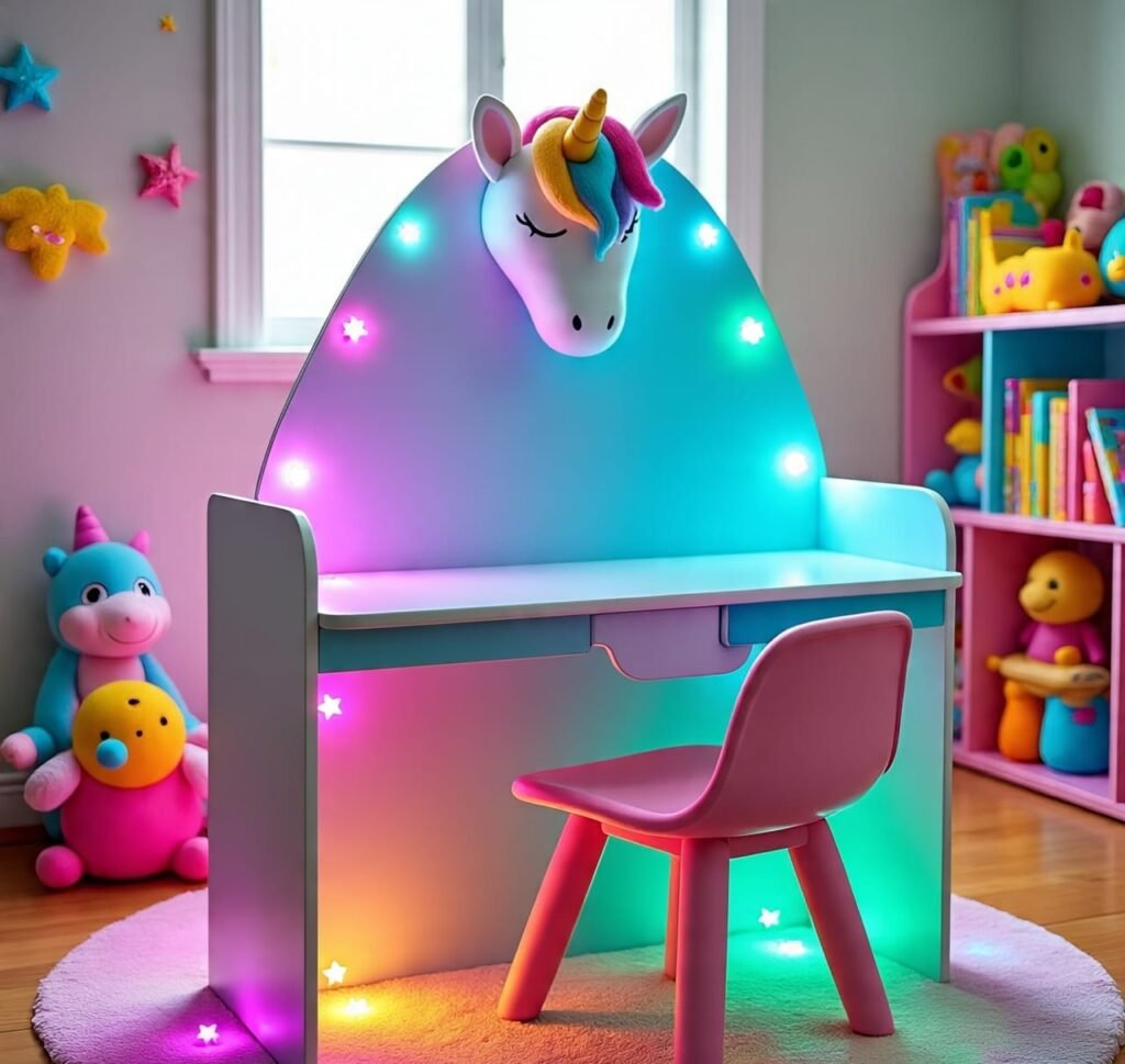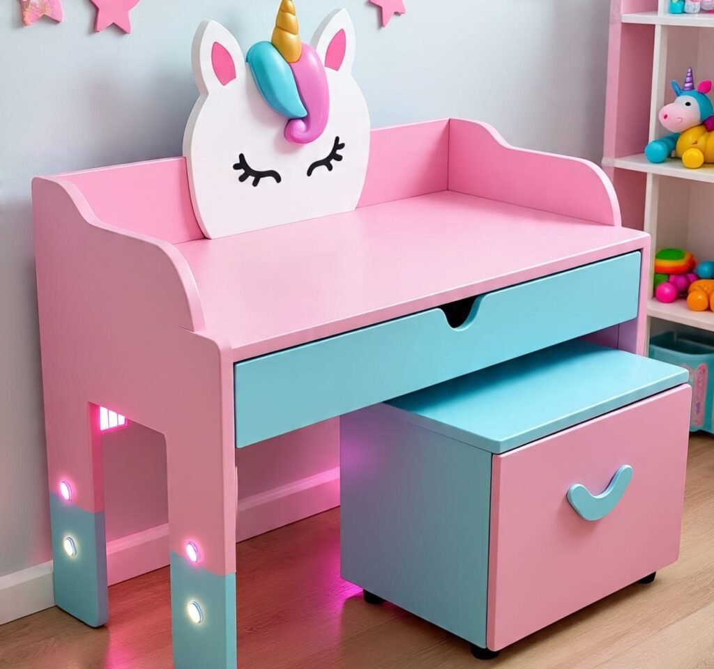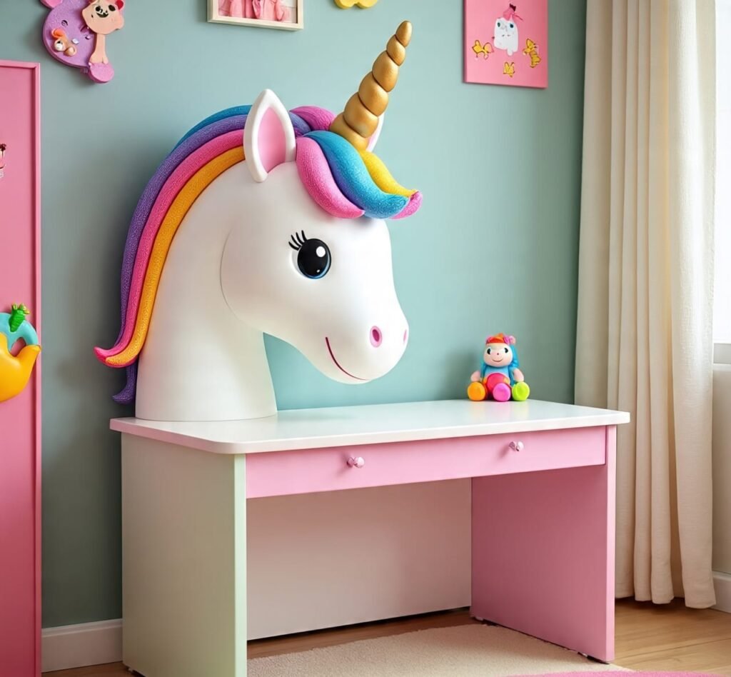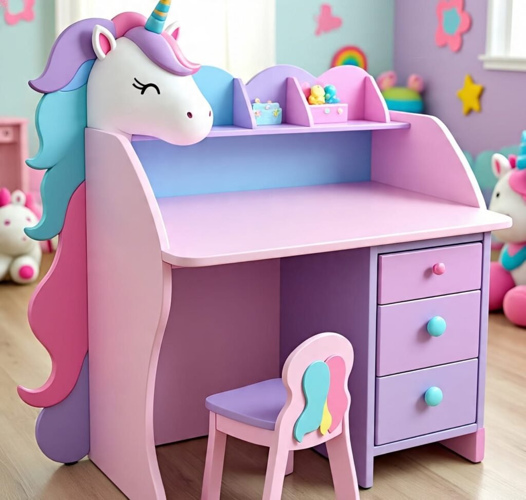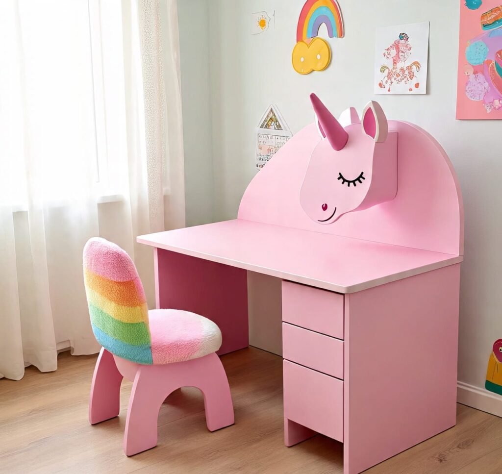 If you’re dreaming of a room that inspires joy and creativity, this colorful unicorn desk is the perfect centerpiece. It blends beauty, function, and a dash of magic, turning every moment at the desk into a journey through rainbows.