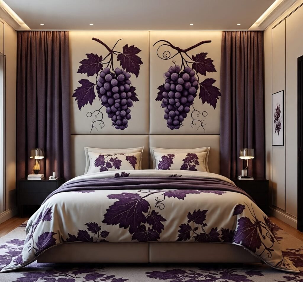 24. Sacred Grapevine Serenity – A Calm Room Wrapped in Soft Grape-Toned Beauty