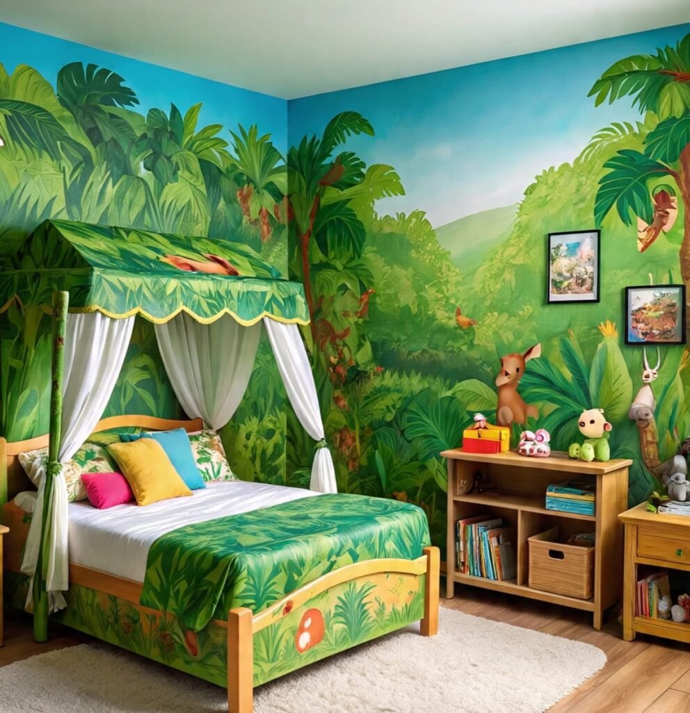 For many tribes across the old lands, we believed a child’s room was not just four walls—it was a sacred den where imagination grows stronger than oak roots and dreams run wilder than buffalo herds. Today, parents still seek that same spirit, but now we weave it with paint, murals, and playful décor. What follows is a storyteller’s walk through twenty jungle-themed children’s rooms, each one a different path through the wild. Every image carries the scent of deep forests, the echo of roaring lions, the colors of parrots under a green sky. These rooms are not just decorated—they are portals, where young minds can learn courage, curiosity, and a respect for the natural world. Let your footsteps follow mine through this wild journey.