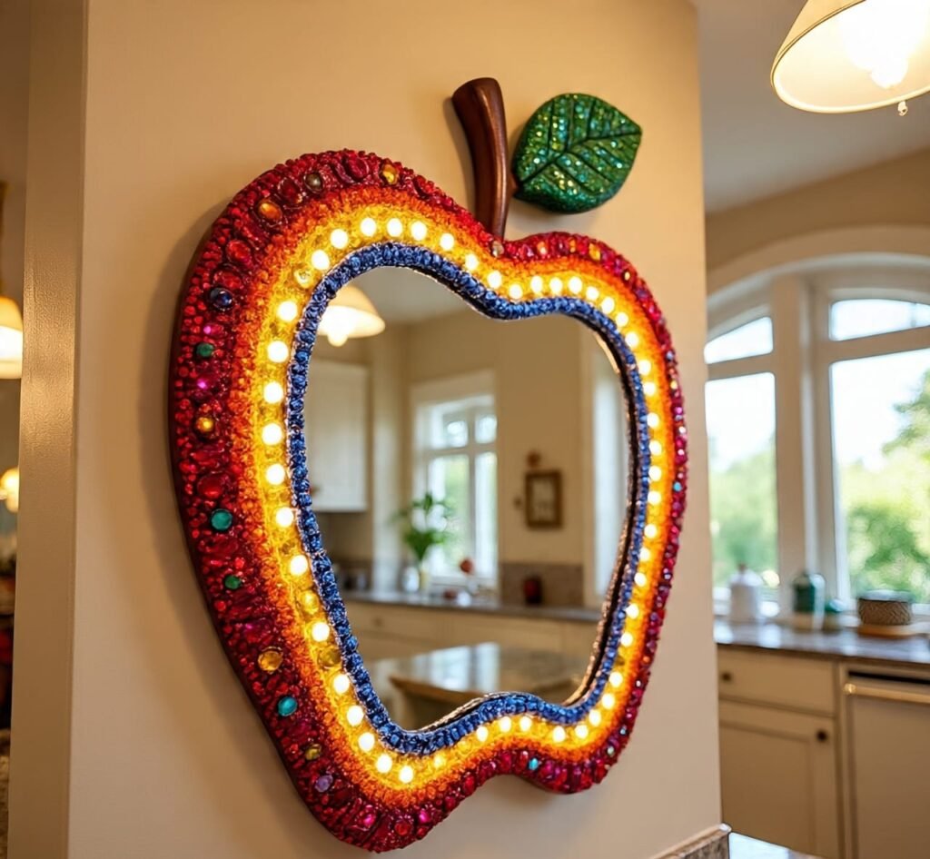 With its vibrant red and golden glow, the Apple-shaped Mosaic Mirror looks like a warm fire winter evening. Each light-cowling tile looks alive and carries the Earth’s energy. In native knowledge, Apple represents love and health – every household needs two things. Plagued near a window or near a console, it reflects the sunshine on your site and fills it with heat. This mirror is not just seeing yourself – this is to see the love that lives in your home.