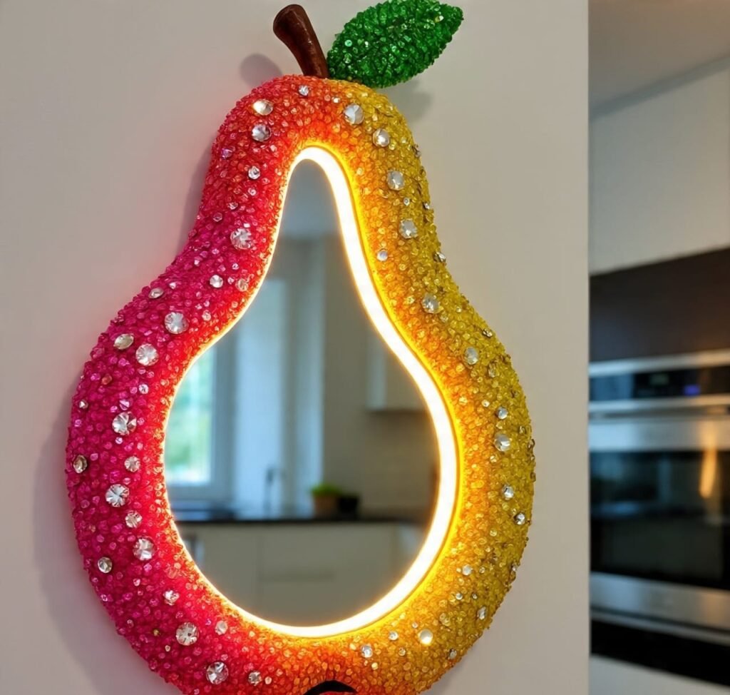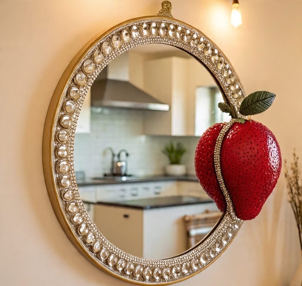 In the old forests, strawberries were the first fruit that ripened, a gift of sweetness before the summer sun burns. This pearl-purry strawberry mirror talks about love, kindness, and beginning that grows some permanently. The deep red fruit rests against soft pearls like Moonlight Morning Light. To bring such a piece to your house is to invite gentleness and warmth into your days. For Packer’s Path: Strawberry Home Decor, Fruit Mirror Design, Love-Inspired Wall Art-Such phrases that detect beauty in the elderly as the earth’s heartbeat.