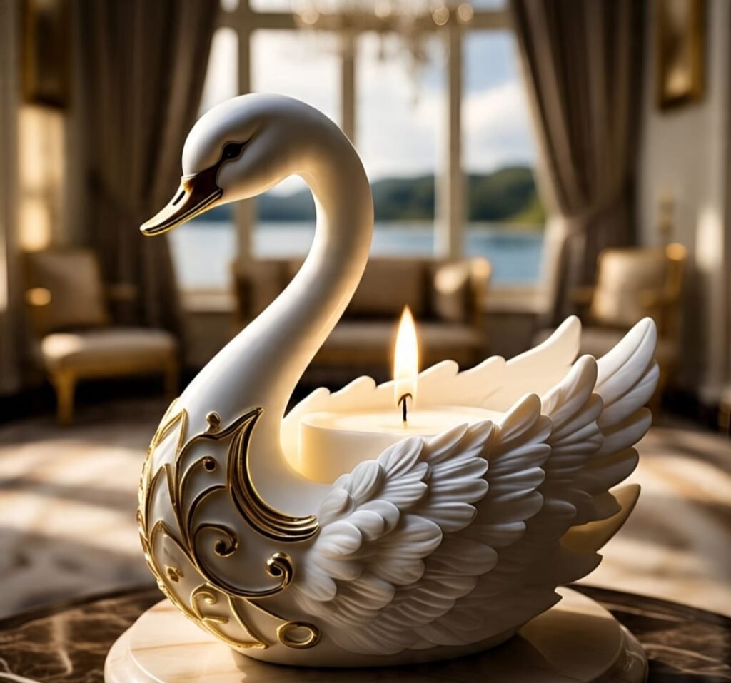 The swan is a symbol of purity, loyalty, and inner calm. This white sculpture with golden detailing brings elegance to dining rooms, hallways, or peaceful spaces. SEO terms: swan decor sculpture, elegant centerpiece, white and gold home accent. It encourages grace in both surroundings and spirit.