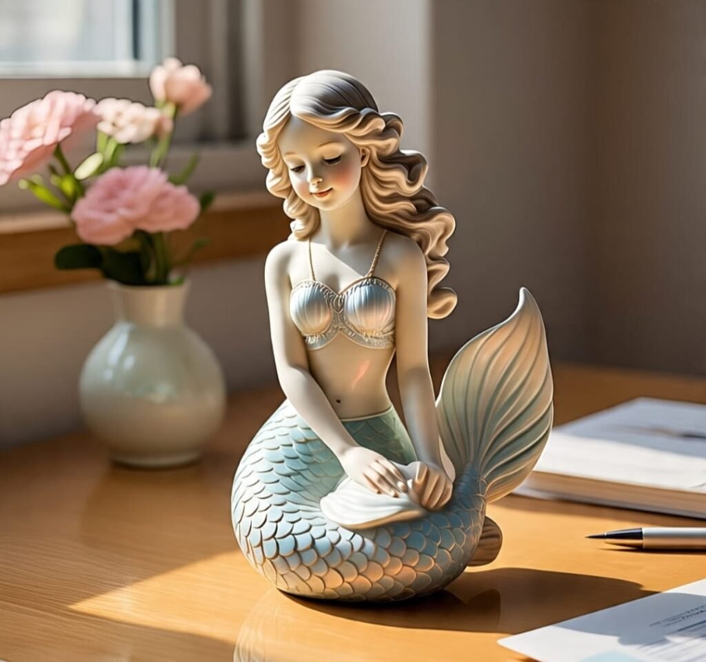 The mermaid has long been seen as a keeper of mysteries and intuition. This ceramic figurine, with gentle colors and soft detailing, adds warmth and calm to bedrooms, reading corners, and quiet spaces. It brings a dreamy coastal charm while promoting serenity. SEO terms: mermaid figurine, ceramic ocean decor, coastal home accent. Let her presence remind you that beneath every calm surface lies deep wisdom and unspoken stories.