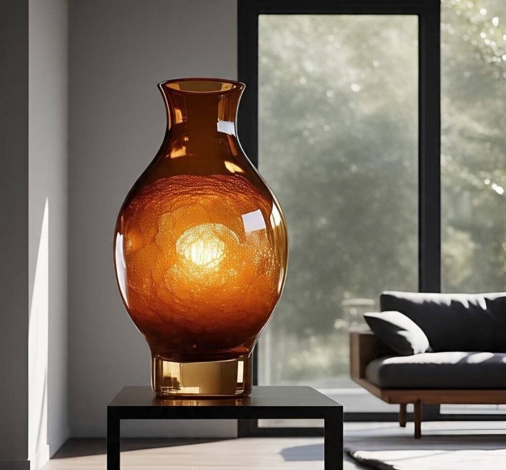 Warm amber light has always symbolized guidance and ancestral protection. This amber glass jar glows with rich golden tones, making it ideal for bedrooms, studies, and cozy nooks. SEO terms: amber glass decor, warm golden vase, artistic jar design. Its warm shine feels like a small hearth within the room, grounding and comforting.