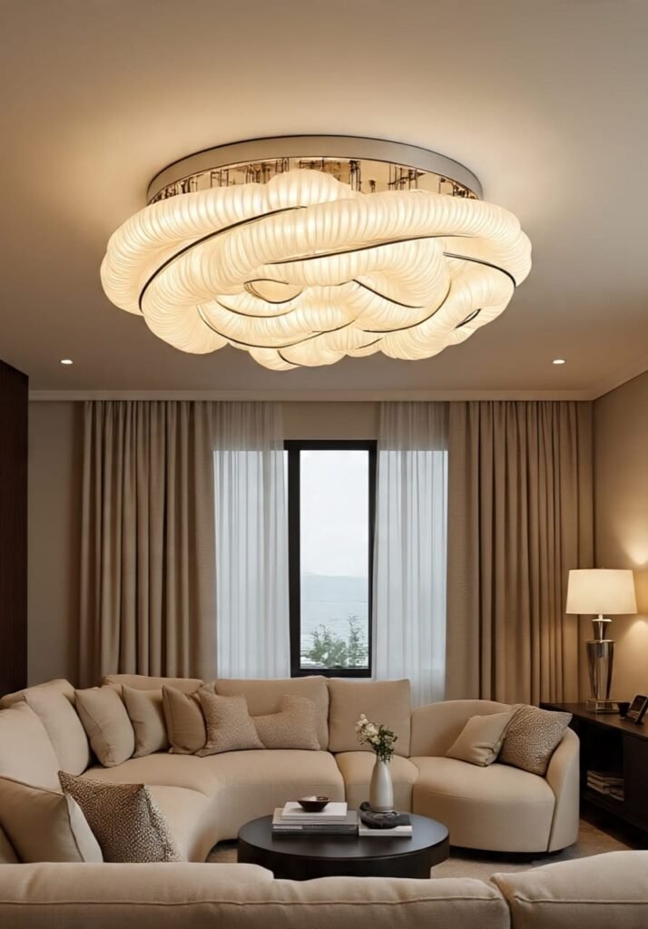 Floating above a refined living area, the ninth chandelier looks like a luminous cloud sculpted from pearls and glass. This luxury chandelier design embodies softness and serenity. Its rounded forms seem to breathe gently, diffusing light like moonlight through mist. Perfect for high ceilings and modern lounges, it adds an airy luxury that soothes rather than dazzles. The design speaks of calm confidence — a reminder that true beauty is found not in excess, but in effortless grace. It’s the kind of lighting that turns stillness into poetry.