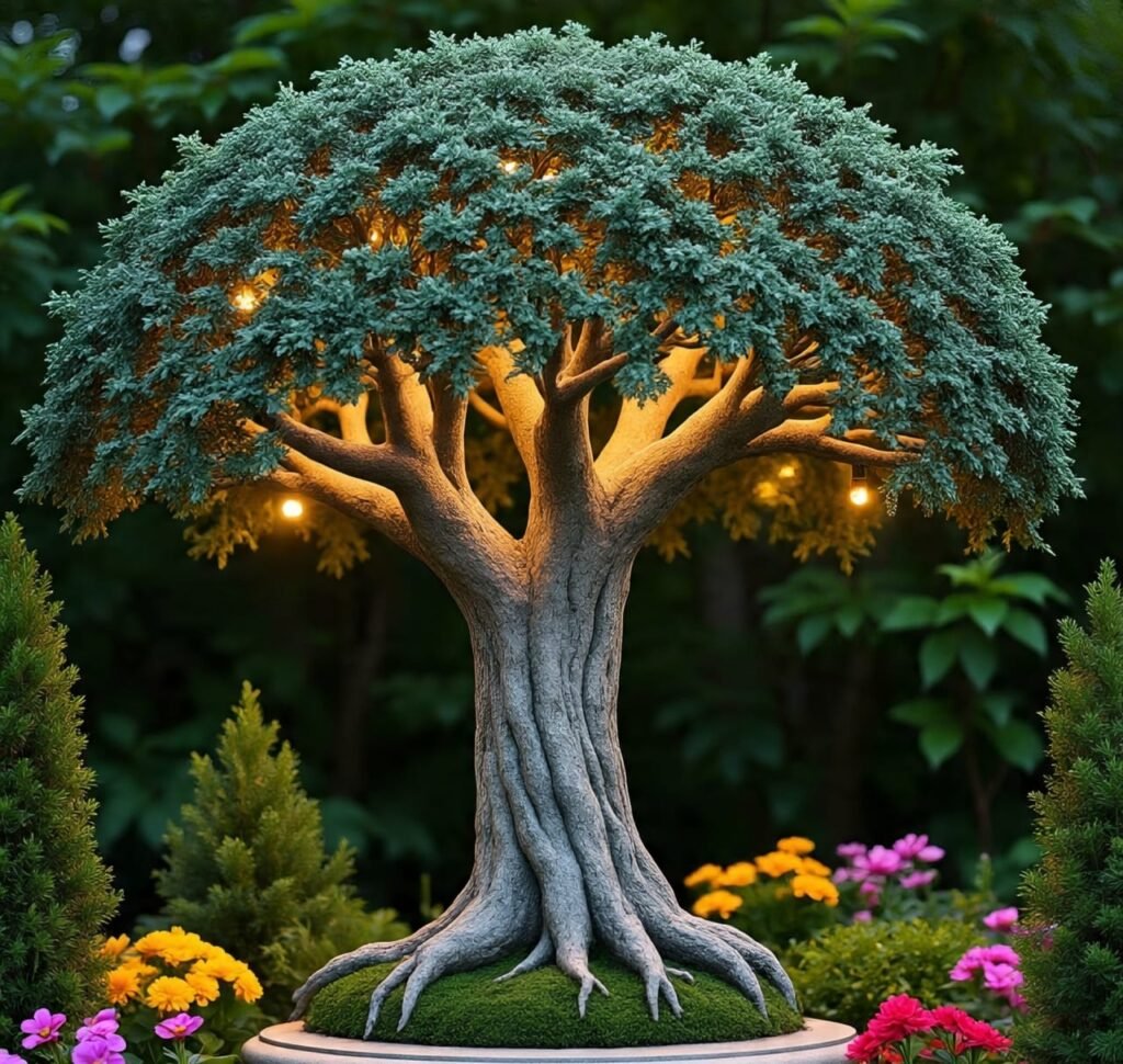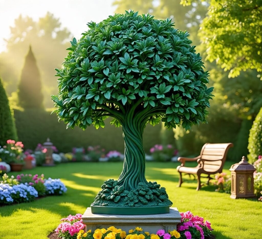 Rooted in strength and grace, this masterpiece captures the power of nature’s green heart. The deep emerald tones shimmer under the moonlight, and each leaf glows like a precious stone. It’s perfect for those who seek balance in their outdoor design — where luxury garden elements embrace the spirit of natural life. This tree stands not just as decor, but as a guardian of tranquility.