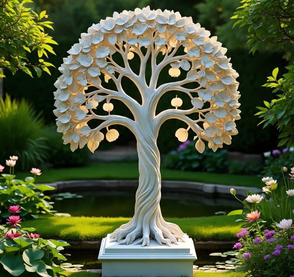 Pure, calm, and ageless — this ivory-toned tree glows with the elegance of moonlight reflected on snow. Its sculpted form weaves artistry into every curve, making it the centerpiece of high-end garden lighting design. By night, it radiates peace; by day, it stands as a work of modern art. A perfect union between craftsmanship and the spirit of the earth.