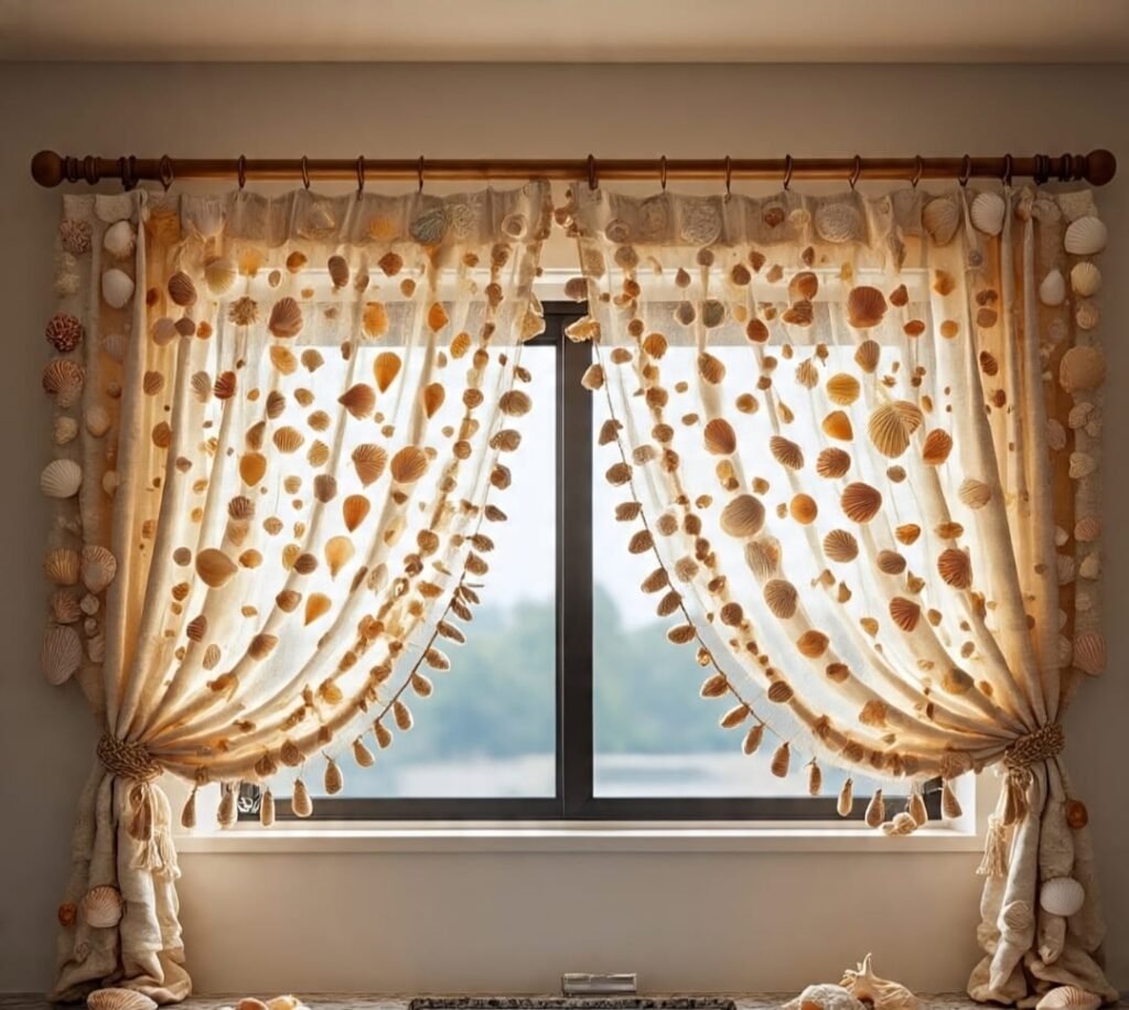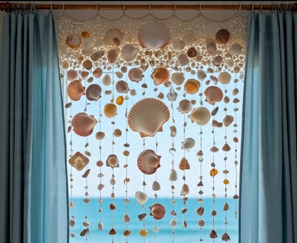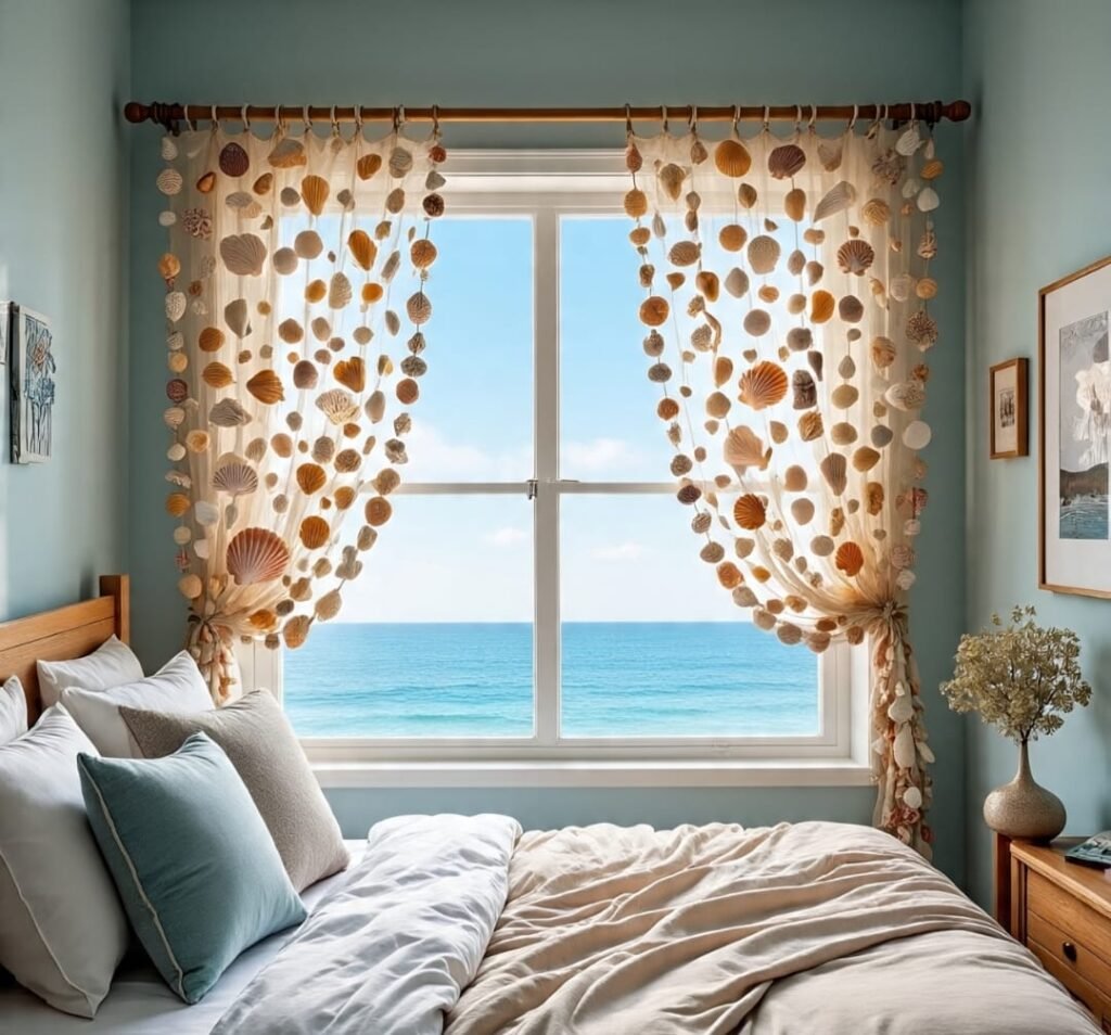 Whispers of the Tide: 16 Visions of Seashell Curtain Decor